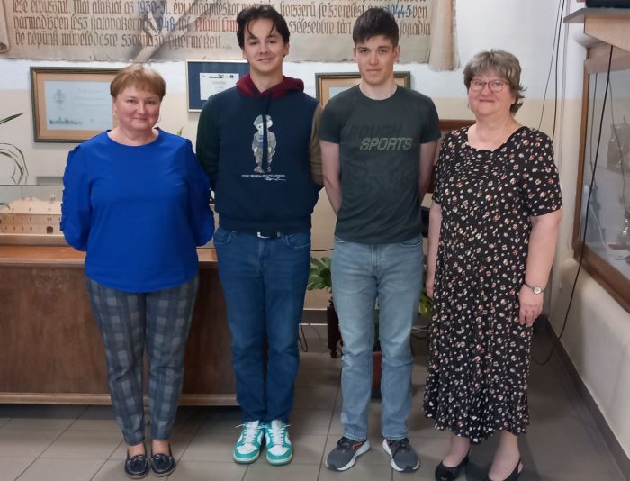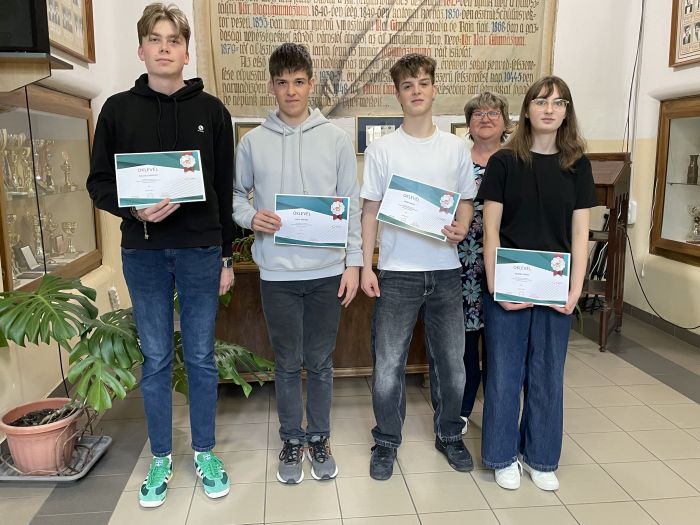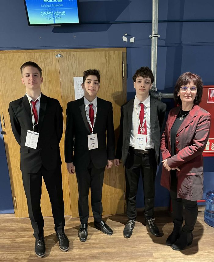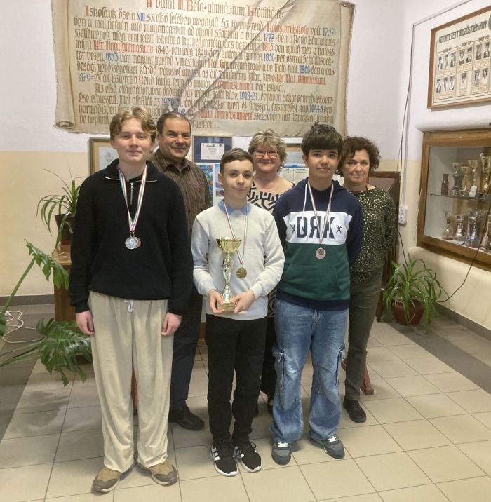 A Curie Alapítvány által szervezett Curie Matematika Emlékverseny döntőjét Szolnokon, a Debreceni Egyetem Szolnoki Campusán rendezték meg. A diákok a három levelezős forduló után a területi fordulót a III. Béla Gimnáziumban írták meg. A legjobb teljesítményt elért tanulókat hívták meg az országos döntőre, ahová Szlovákiából és Szerbiából is érkeztek diákok. Iskolánkat a döntőben Farkas Álmos Péter 7.B, Ponácz Levente 8.A és Lajdi Horka Bendegúz 9.A osztályos tanulók képviselték. Kiemelkedő eredménnyel zárult számukra a verseny. Álmos 1. helyezést ért el, ezzel elhozhatta a 7. osztályosok vándorserlegét. Horka 2. helyen végzett. Felkészítő tanáruk Steingártné Molnár Mária, akit díjat vehetett át felkészítő munkájáért. Levente 3. helyezést ért el, felkészítő tanárai Gottlieb Gábor és Sasfalvi Ildikó. Eredményükre nagyon büszkék vagyunk, szívből gratulálunk és további szép sikereket, eredményes versenyzést kívánunk!