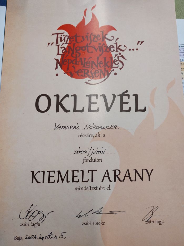 Baja adott otthont az április 5-én zajló Tüzert viszek, lángot viszek ... Gyermek és Ifjúsági Minősítő Népdaléneklési Verseny járási/ városi fordulójának. Blank Berta és Tóth Sarolt produkcióját a zsűri arany, Koprivanacz Luca előadását pedig ezüst minősítéssel értékelte. A Vadvirág népdalkör nyírségi népdalcsokra kiemelt arany minősítést kapott. Gratulálunk a dalos diákoknak!