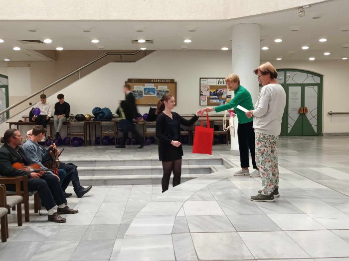 A díjkiosztó ünnepségre érkező bélás csapatnak igen izgalmas és tartalmas napja volt. Az eredményhirdetést megelőzően Dr. Pozsgai István értékes előadását hallgattuk meg az óorosz templomépítészetről. Jutott idő egy kis barangolásra az egyetem botanikus kertjében, és egy kis örömzenélésre is, mellyel Kereskedő Petra lepte meg a várakozó közönséget, majd a díjak átadása következett. A rendezvény koncerttel zárult, melyen Pécs városának zenei kiválóságai léptek föl.