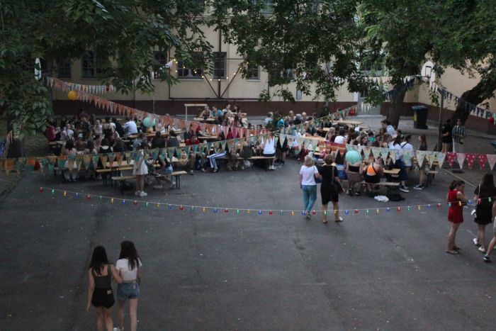 Iskolánkban idén is megrendezésre került a hagyományos Kerti Parti, amin körülbelül 250 diák vett részt. A megszokott „Húsmegállós” hamburger és a bélás koktél mellett az idén csavaros fagylalt is szerepelt a kínálatban. A zenét DJ Guba szolgáltatta, és lehetőség volt UV – arcfestésre is. A Bajai Fiatalok Színházának tánckara, amelynek sok bélás diák is tagja, egy meglepetés tánccal készült. A bemutató után mindenki táncra perdült az ismert számokra. A jelenlévő tanárok is csatlakoztak diákokhoz, közösen kisebb és nagyobb köröket alkotva, bulizva búcsúztak az idei tanévtől. Az idei parti nagy sikere annak is köszönhető, hogy a Diákönkormányzat munkáját egy önkénteseken alapuló csoport is segítette. Aki ott volt, jól érezte magát, aki nem volt ott, az jövőre legyen ott! Mindenkinek jó pihenést, szép nyarat!