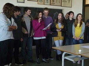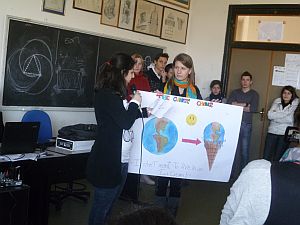 A csapat egy rövid bemutatkozással készült, majd ötleteket gyûjtöttek egy, az Európai Parlamentnek szánt levél megírásához. A legnagyobb feladat azonban egy film készítése volt az ökológiai lábnyomhoz kapcsolódóan, melynek forgatásában Réti Attila tanár úr és Sümegi Júlia irányításával a 12. d osztály vett részt.