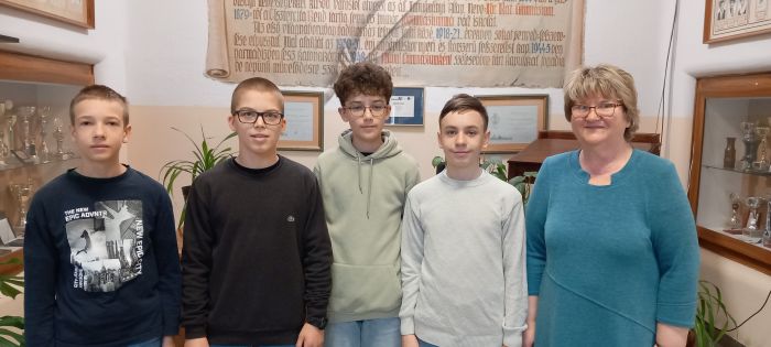 Nagy öröm számunkra, hogy 8. osztályos csapatunk az országos döntőn képviselheti iskolánkat. A csapat tagjai: Aladics Ábel 8.A, Ponácz Levente 8.A, Tóth Zsigmond 8.B, és Wolf Dávid 8.B osztályos tanuló. Felkészítő tanáraik Gottlieb Gábor tanár úr és Sasfalvi Ildikó tanárnő.