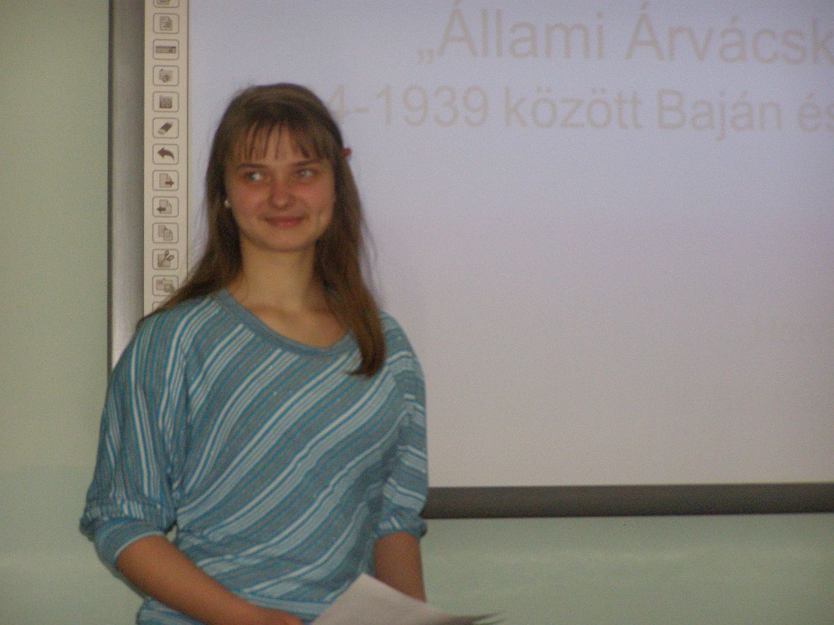 A Kutató Diákok Szövetsége által X. alkalommal meghírdetett tudományos esszépályázaton HORVÁTH KLÁRA (11.C) az ÁLLAMI ÁRVÁCSKÁK 1935 - 1939 KÖZÖTT BAJÁN címû, levéltári kutatáson alapuló dolgozatáért I. díjat kapott.