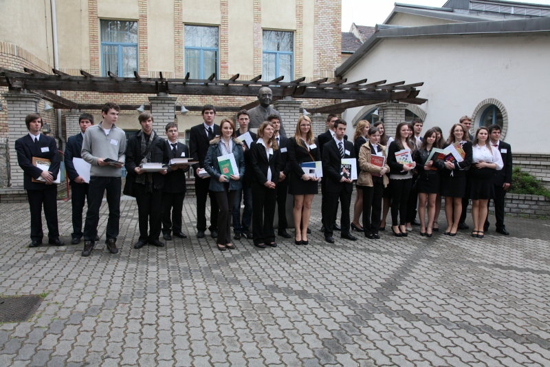 A második, írásbeli fordulóba jutott 31 fõ közül a legeredményesebb 12 diákot hívták meg a kecskeméti szóbeli döntõbe, ahol a nagyon szoros versenyben Amstadt Áron a 6., Arnóczki Nándor a 10. helyezést érte el. Mindketten a 10. A osztályba járnak.