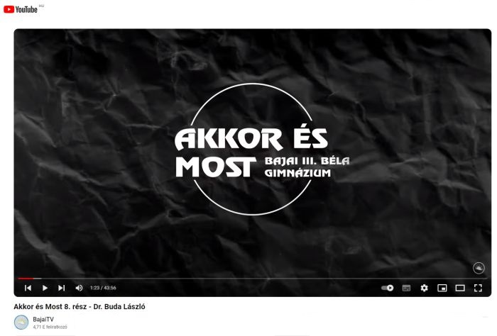 Az Akkor és Most portrésorozat 8. adásában Lusztig Ágnes vendége Dr. Buda László, aki 1982-86 között tanult a Bajai III. Béla Gimnáziumban. Osztályfőnöke Maros Zoltán volt.