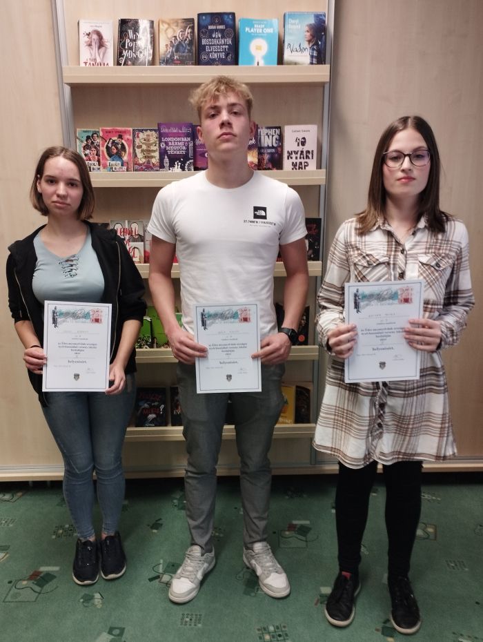 Iskolánkból Jekl Tamás 11. C osztályos tanuló 3. helyezéséért vehetett át a díjkiosztó ünnepségen oklevelet és ajándéktárgyakat.