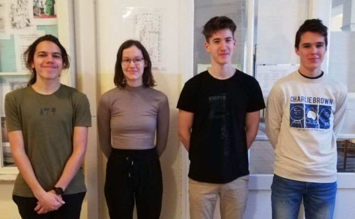 Hajdú András (8.A), Béla Miklós (10.B), Gottlieb Gergely (10.B), Rozmanitz Ádám (9.B), Geiger Csanád (10.B) – Felkészítő tanár: Sziegl Hajnalka