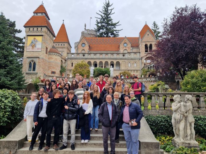 Október 8-án a marosvásárhelyi Bolyai Farkas Elméleti Líceummal és a Marosvásárhelyi Református Kollégium diákjainak egy része és kísérő tanáraik már ismerősként érkeztek a gimnáziumunkba, a városba, hiszen a három iskola közötti kapcsolat már igen hosszú időre, egészen 2007-re nyúlik vissza. Az idén 17 diák látogatott hozzánk, közöttük is voltak visszatérők. Baját már ismerték, így olyan programot kellett nekik találni, ahol még nem jártak, még nem ismerik Magyarországból. Így esett a választás Székesfehérvárra. Először a Bory vár zegzugos termeit, tereit járhatták be. Néhány lány vágyakozva sóhajtott: ők is szeretnének egy olyan párra találni, aki egy ilyen várat épít nekik. A belvárost szervezett idegenvezetés segítségével ismerhették meg. A városnézés egyik érdekessége III. Bélához kötődik. A Szent István-bazilika altemplomában látható a király testlenyomata.