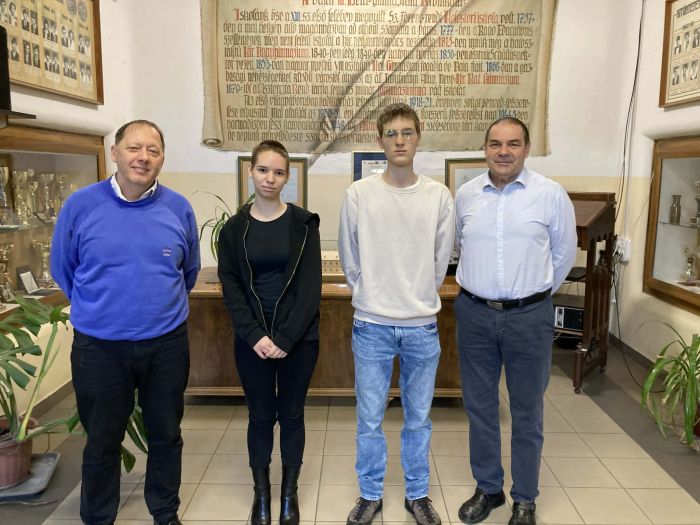 Csorba Barnabás, Frank-Sánta Erik, Horváth Márk, Tóth Csongor és Wolf András 11. osztályos tanulók, felkészítő tanáraik Steingártné Molnár Mária, Nagy Éva és Lakner Attila.