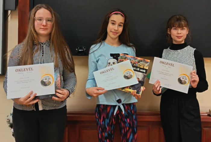 Pallagi Boróka, Ponácz Levente és Wolf Dávid 8. osztályos tanulók, felkészítő tanáruk Gottlieb Gábor és Sasfalvi Ildikó.