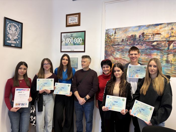 Kalmár Emma, Lajdi Horka Bendegúz, Manhalt Bálint, Szigeti Dávid és Tamaskó Milla 9. osztályos tanulók, felkészítő tanáraik Sasfalvi Ildikó és Steingártné Molnár Mária.
